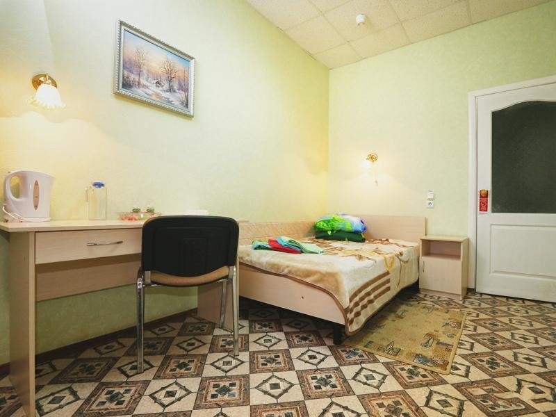 Оснащение номера: односпальная кровать, стол, стул, тумбочка, шкаф, телевизор, холодильник, доп.место - евро раскладушка